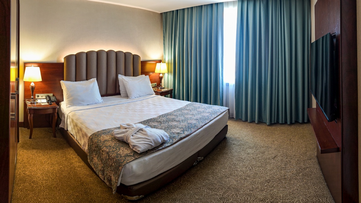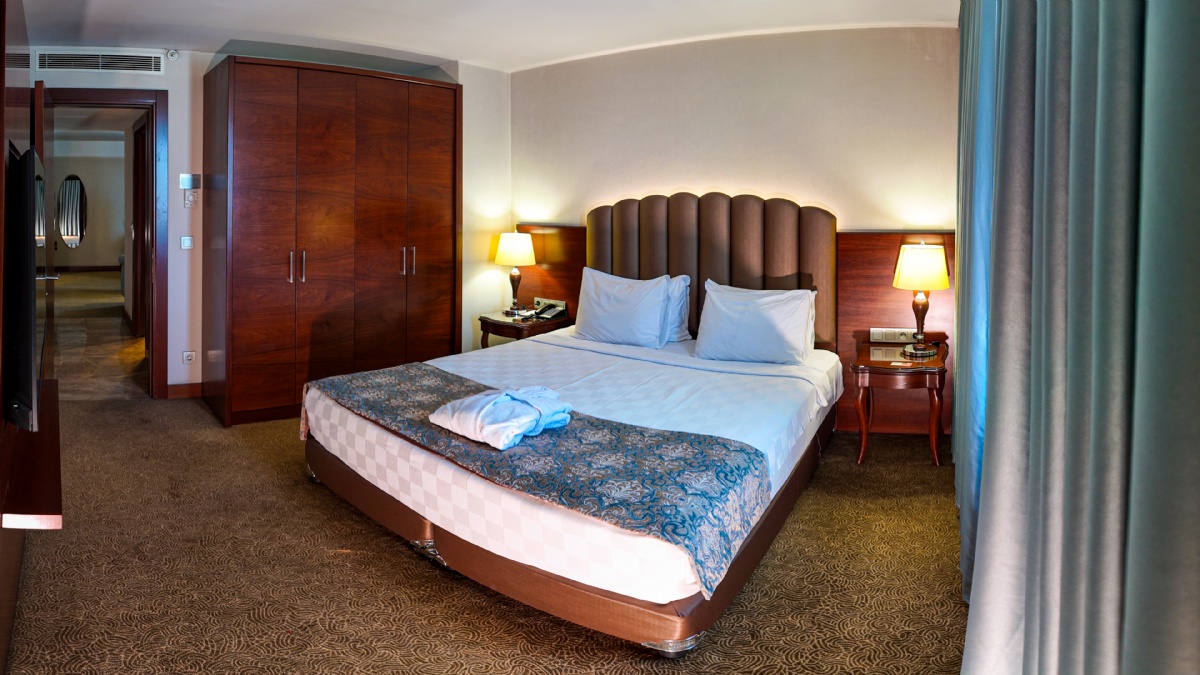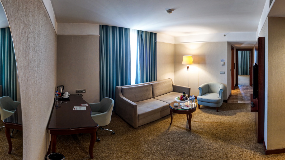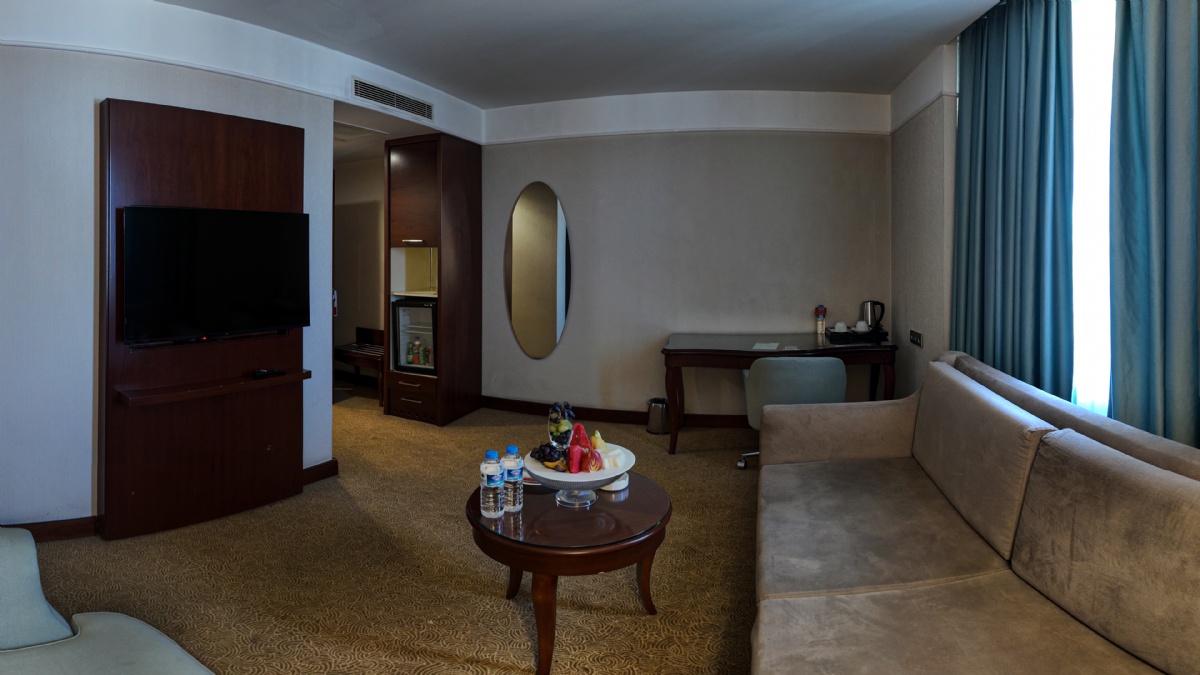 41 m²'lik geniş ve şık Suit Odalarımız, lüks ve mahremiyet arayan misafirlerimiz için tasarlanmıştır. Ayrı oturma/yemek alanı ile hem iş hem de özel yaşam için mükemmel bir mekan sunarak konaklamanıza ayrıcalık katar.